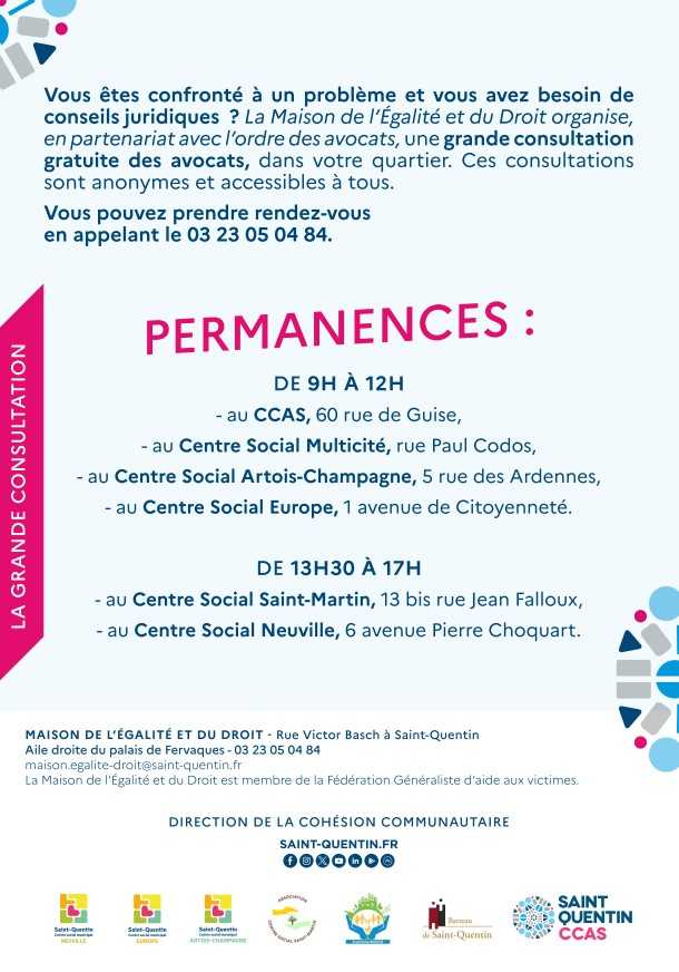 Pour une demande de renseignements en dehors de ces horaires de permanence, vous pouvez contacter le secrétariat de France Victimes 02 au 03.23.20.65.61